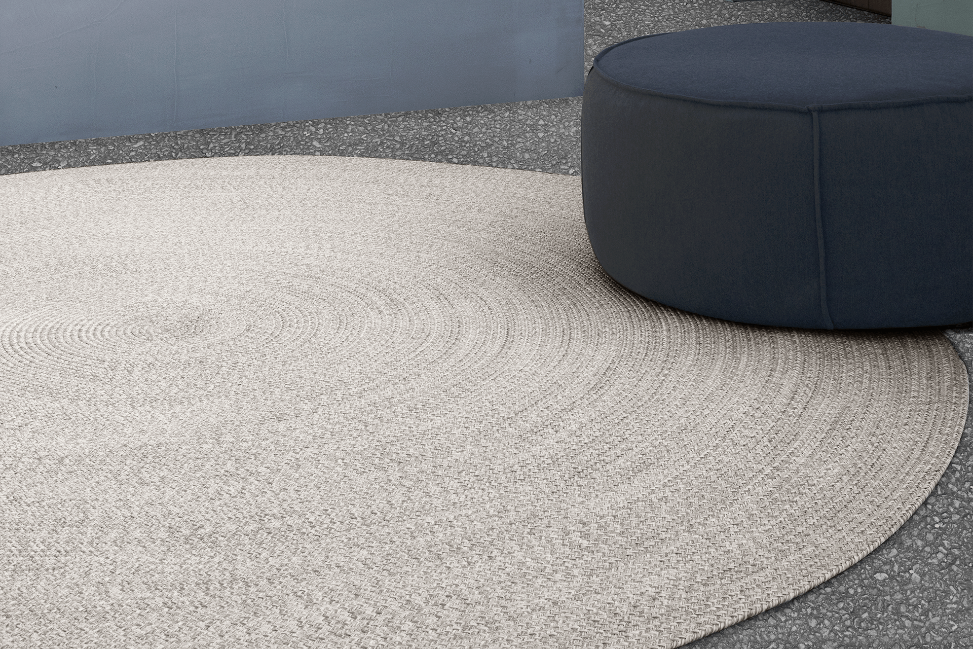 Der Poolside Circle besteht aus recyceltem Vinyl und hat viel natürlichem Charme. Die traditionelle Flechtkunst und das einfache grafische Muster verliehen jedem modernen Zuhause einen natürlichen Aspekt, sowohl im Inneren als auch im Freien. Außerdem ist der Teppich UV-beständig und pflegeleicht.