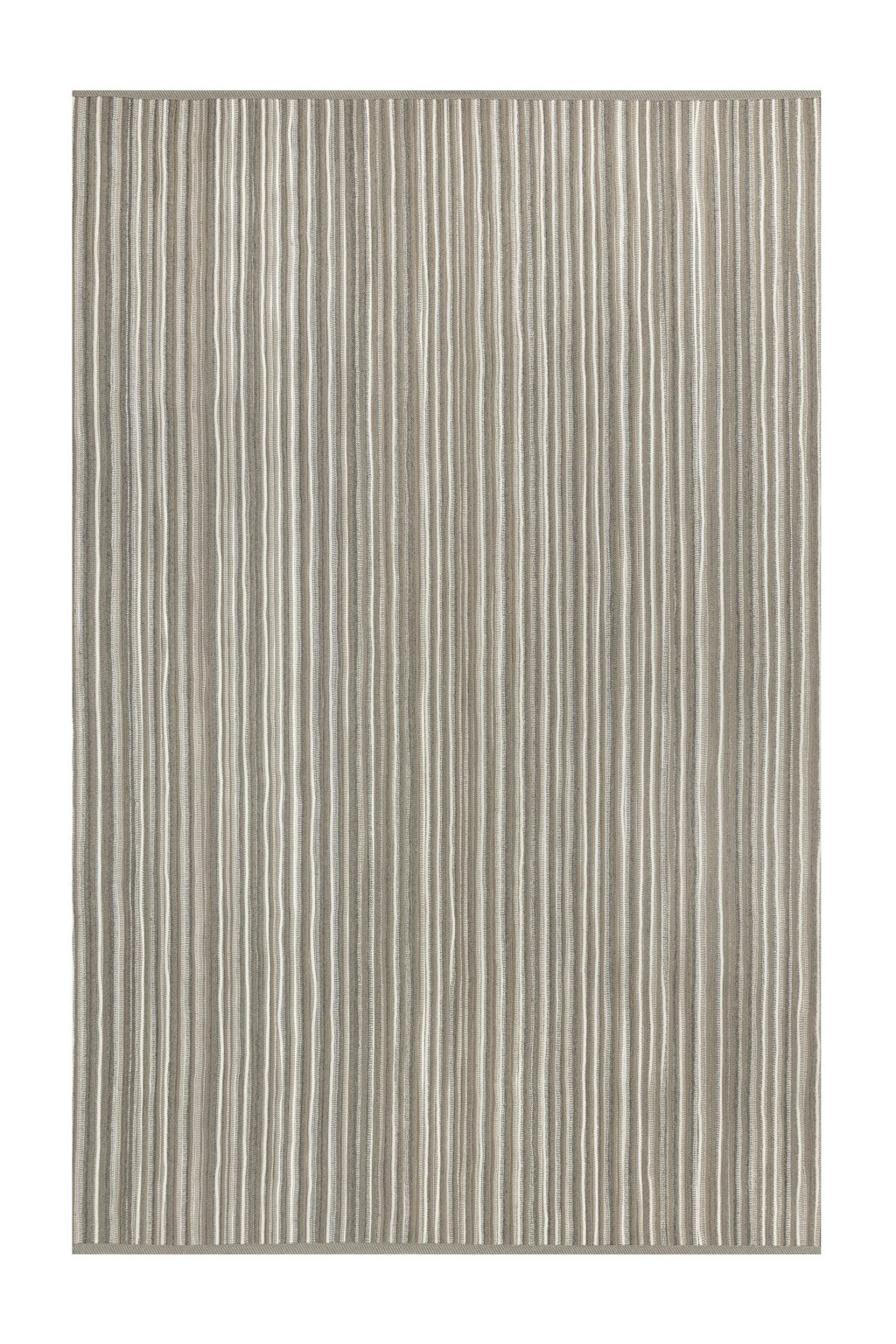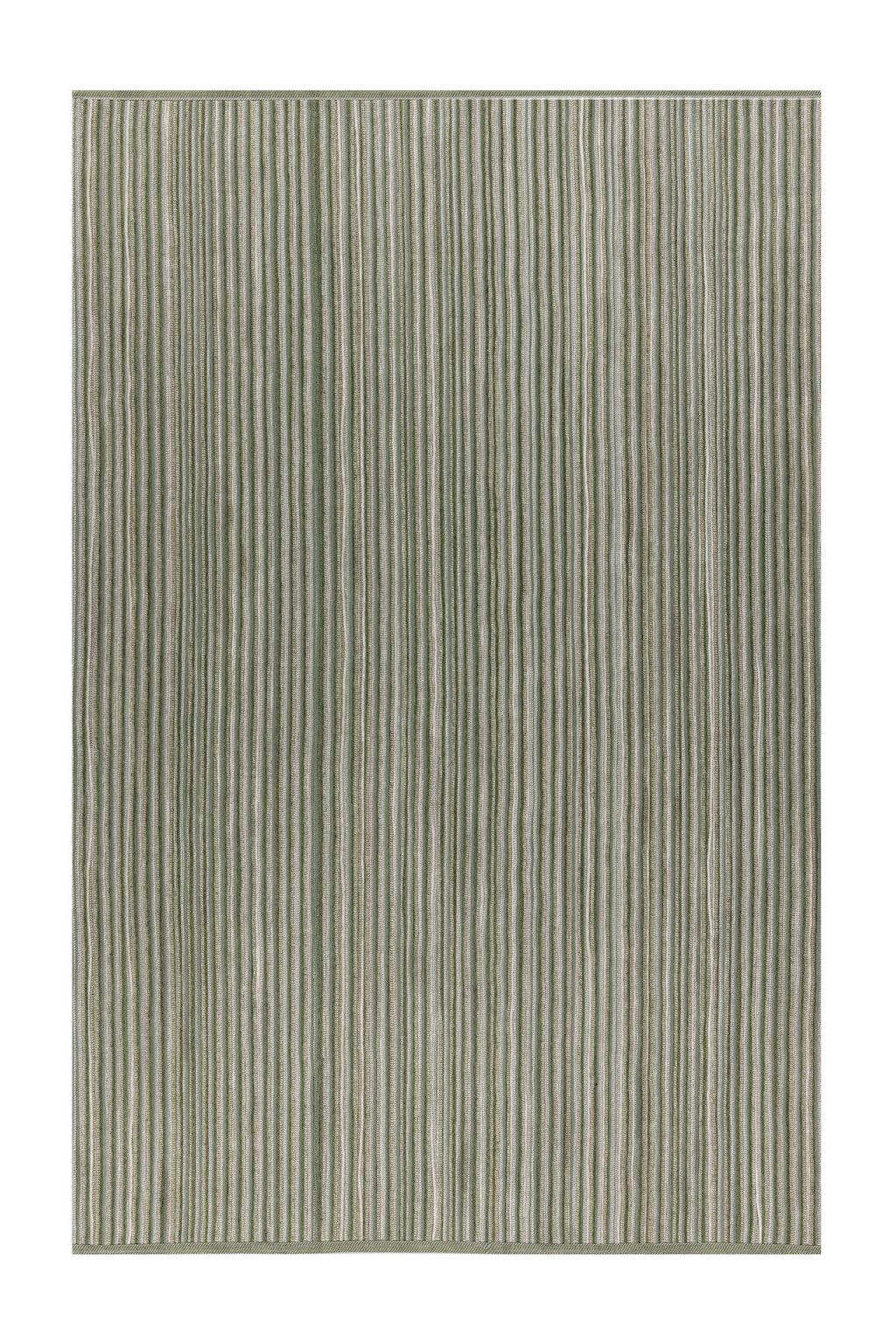 Chaque tapis de cette collection est une harmonie de teintes, rappelant de paisibles prairies verdoyantes, des plages de sable chaud ou les vagues dansantes de l’océan. Le contraste de lignes claires et foncées est souligné par la technique de tricot circulaire, et l’utilisation de quatre couleurs marquées. Elles sont ensuite cousues ensemble, en alternant les cordes claires et sombres pour créer des formes rectangulaires et circulaires accrochant les regards, qui transporteront n’importe quel espace extérieur dans un monde qui lui est propre.