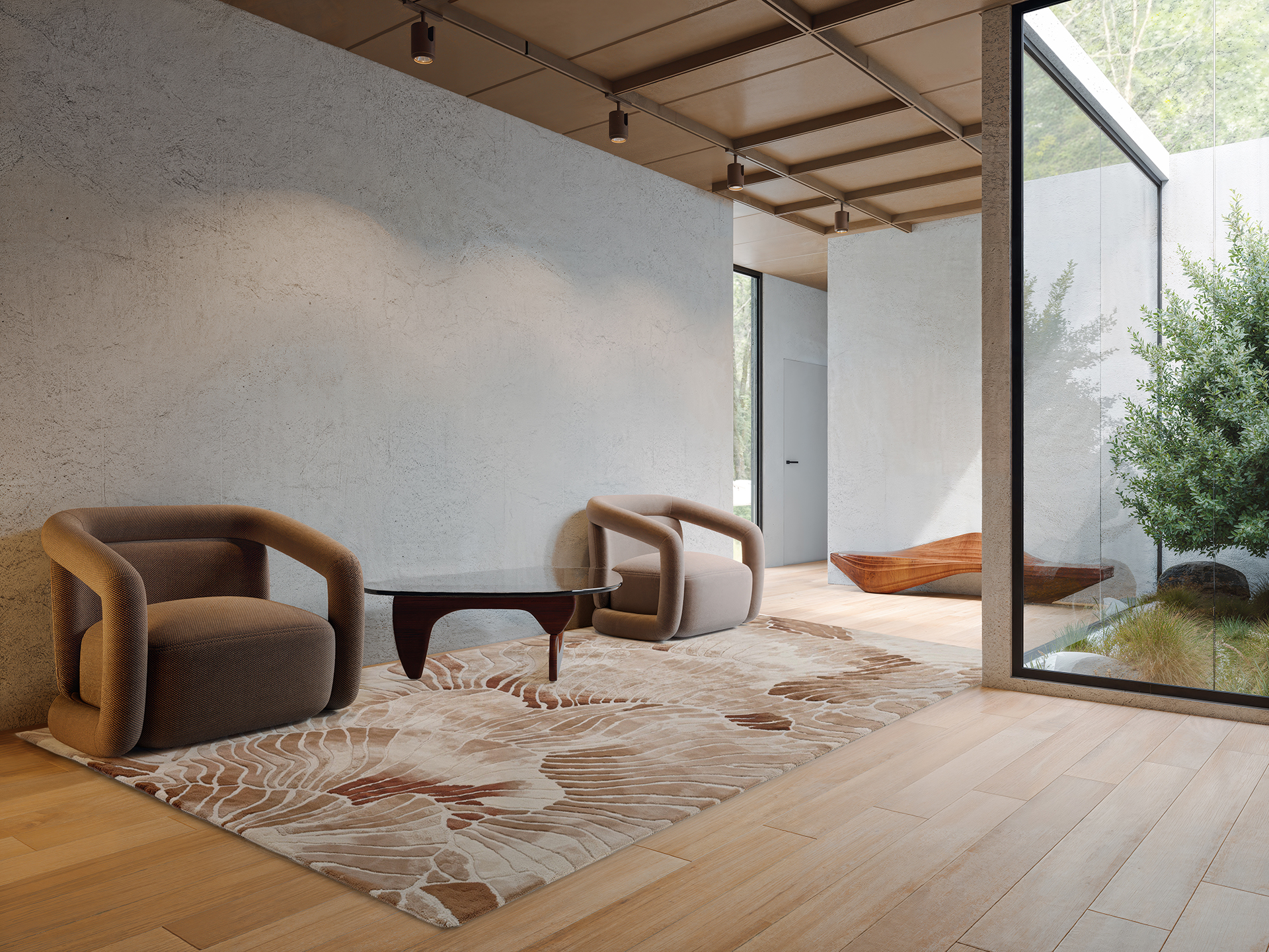 Dune Couture reinterprets the delicate elegance of lily petals through a contemporary, almost digital lens. Crafted from a luxurious composition of wool in loop pile and Seasilk in cut pile, it balances the natural warmth and structure of wool with the shimmering, fluid luminosity of Seasilk.