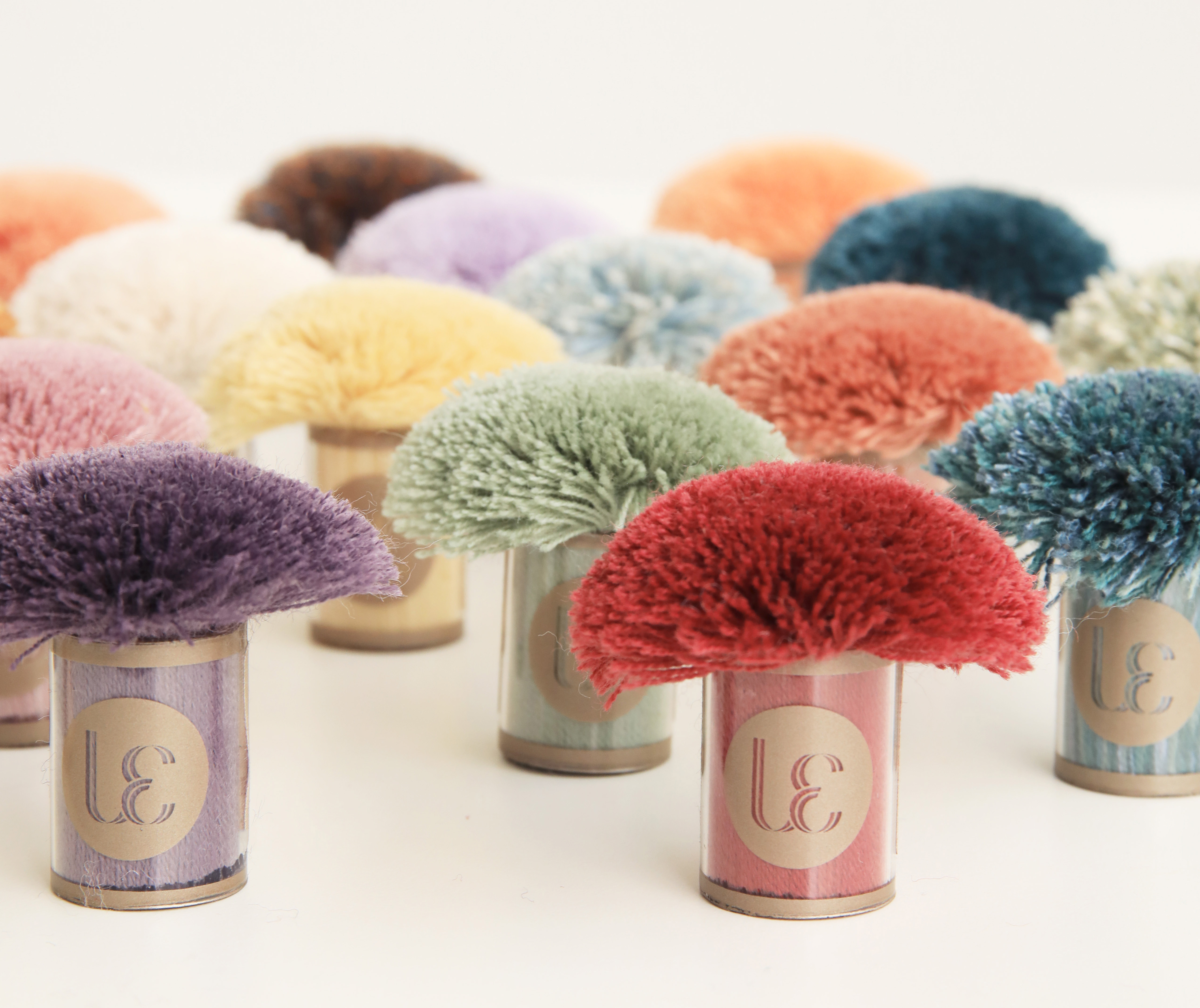 Each quality has its own Designer Color Box, containing a wide range of pompoms in unique shades. Check out the possibilities in our catalogue.